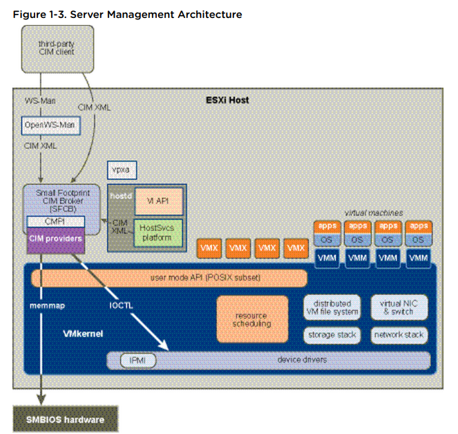 VMware는 Open Source CIMOM(Common Information Model Object Manager)을 fork 해서, SFCB(Small Footprint CIM Broker)를 구현