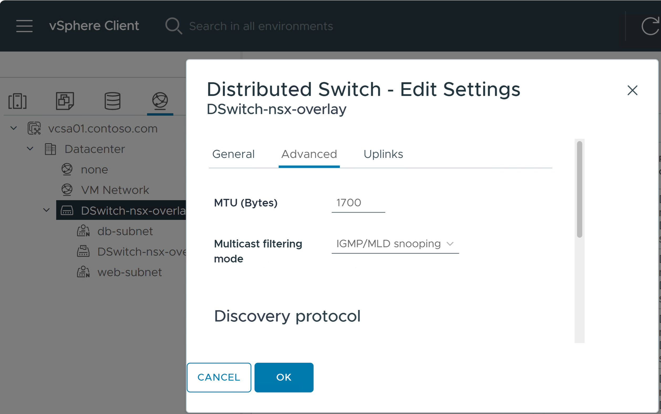 1. Compute Host에서 VDS를 사용하는 경우, VDS에서 MTU 설정